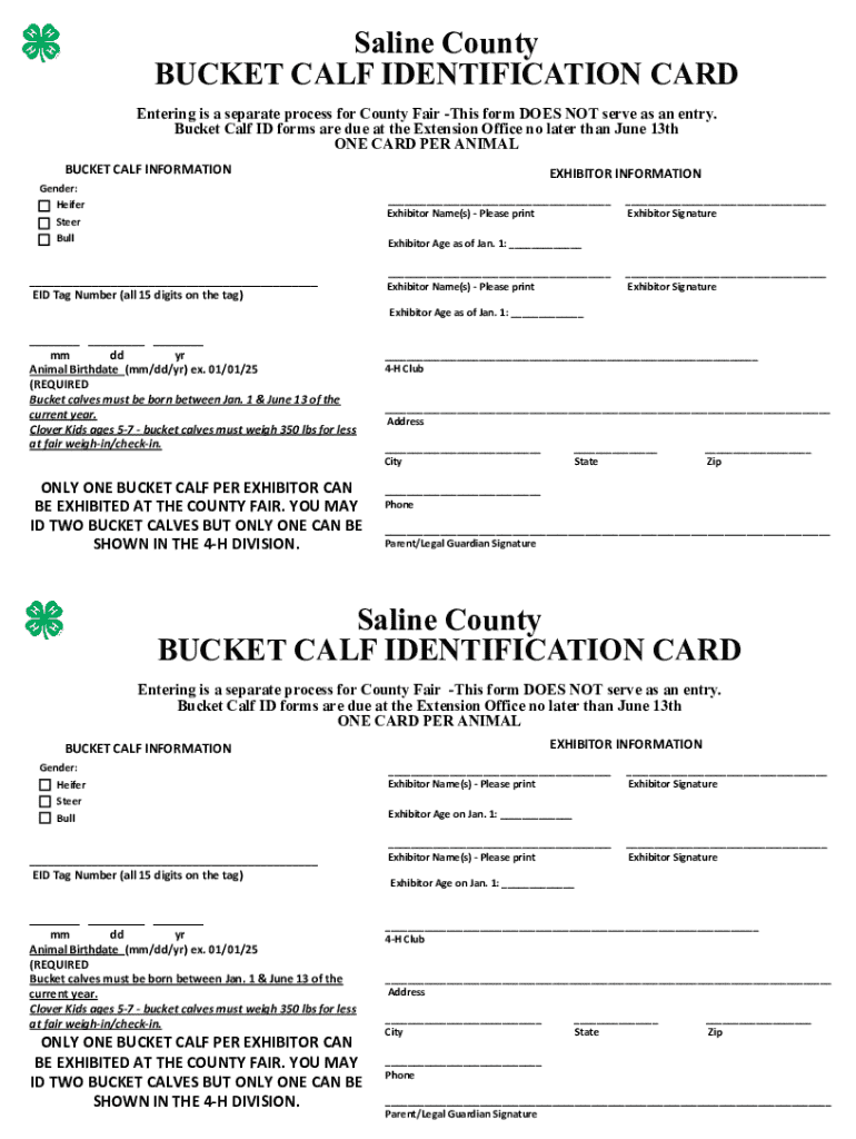 The bucket calf identification card serves a critical role in the livestock industry, particularly for youth involved in 4-H and FFA programs. This card provides official documentation for each calf, which is essential during competitions and shows. Without proper identification, a calf may be ineligible to participate, which jeopardizes the efforts of young farmers who have worked hard to raise their animals.