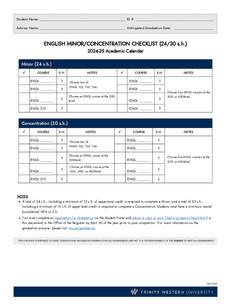 Fill out your english minorconcentration checklist 2430 online with pdfFiller!