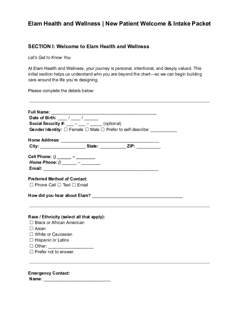 The new patient welcome intake form is typically divided into several key sections that gather vital information necessary for quality care. One of the primary sections includes personal information, where patients provide their name, address, phone number, and emergency contact details. This data is essential for effective communication and patient safety.