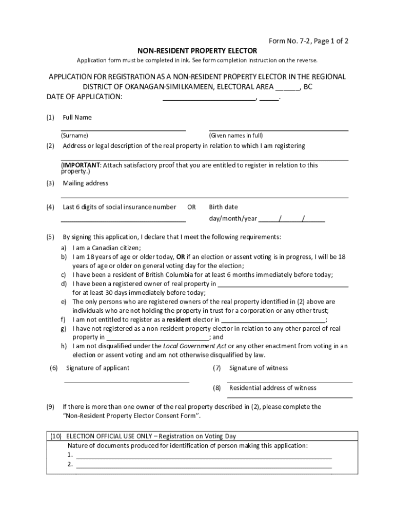 Get the free Non-resident Property Elector