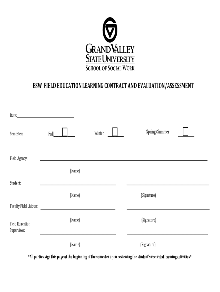 Get the free Bsw Field Education Learning Contract and Evaluation/assessment