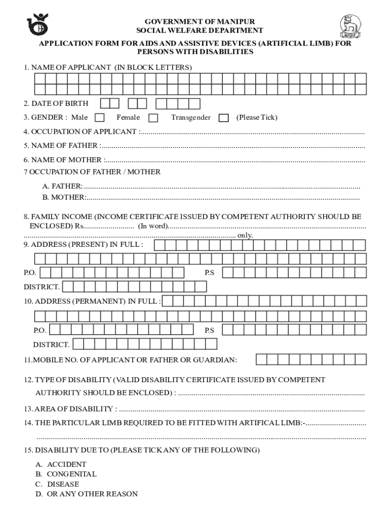 Get the free Application Form for Aids and Assistive Devices