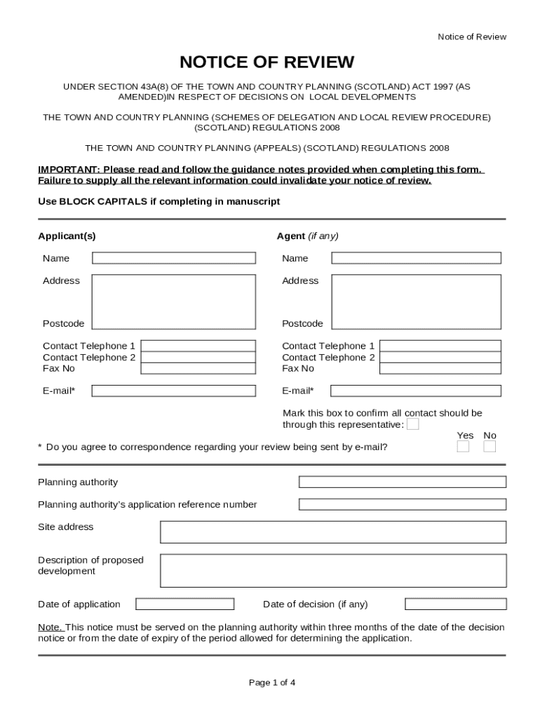 What is Notice of Review Form?