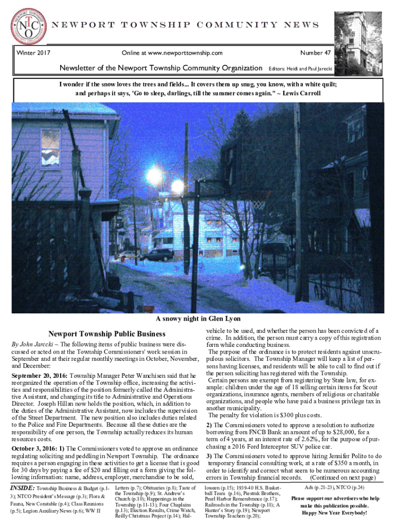 Get, Create, Make and Sign newport township community news