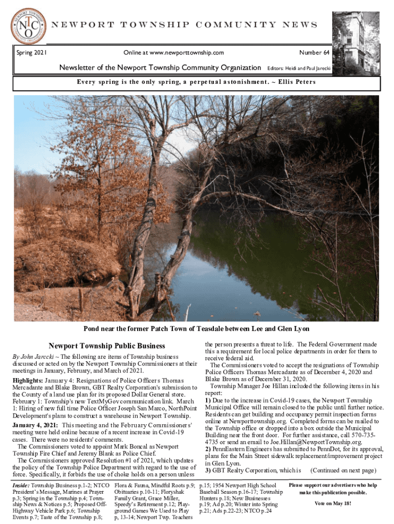 Get, Create, Make and Sign newport township community news