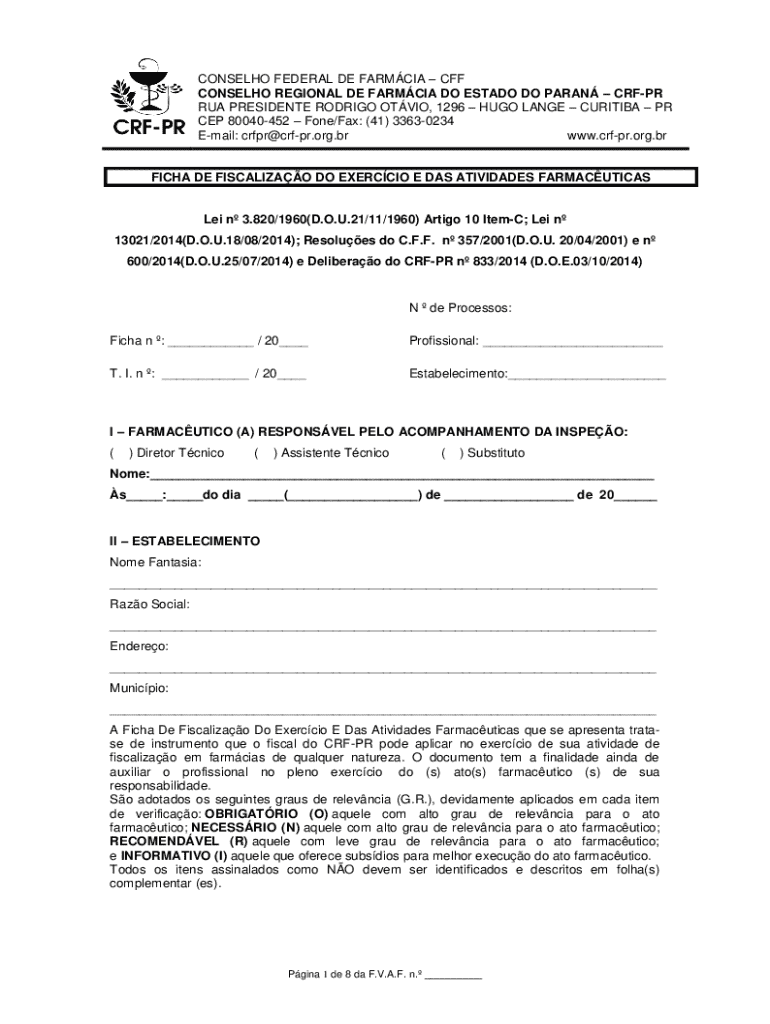 Obtenha o gratuito Ficha de fiscalizao do exerccio e das atividades ...
