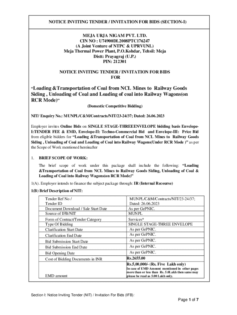 Get the free Notice Inviting Tender / Invitation for Bids (section-i)