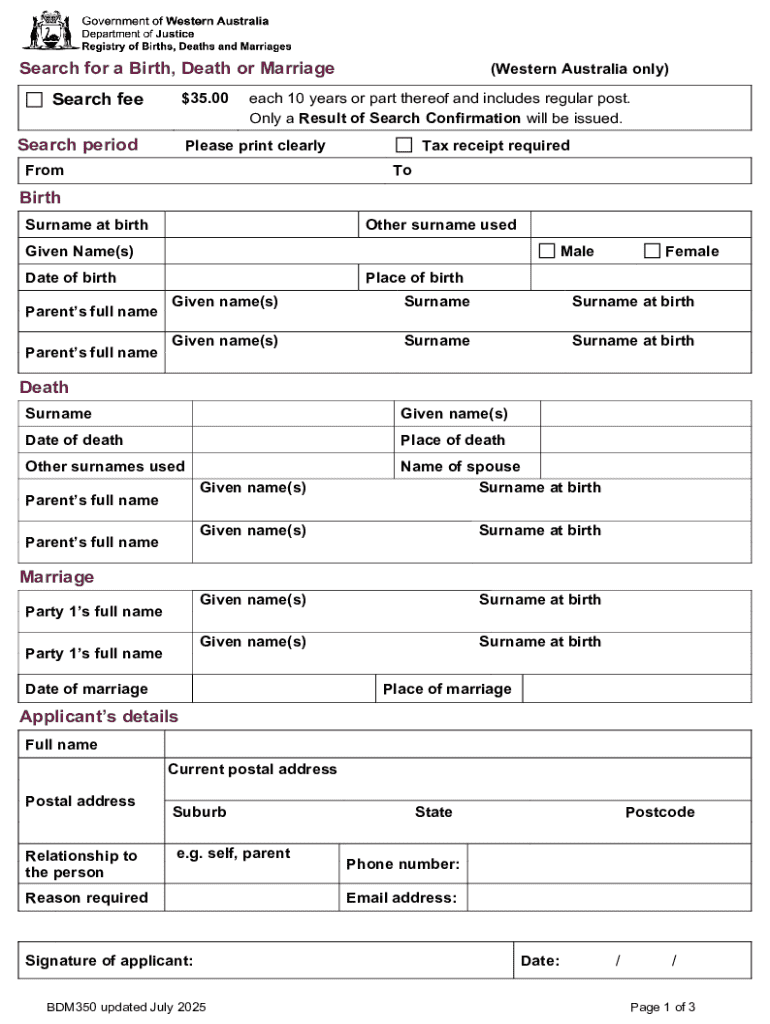 Get the free Search for a Birth, Death or Marriage