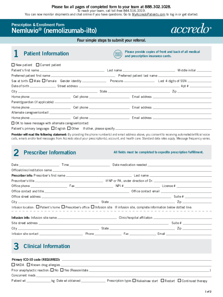 How to fill out nemluvio enrollment form pdf