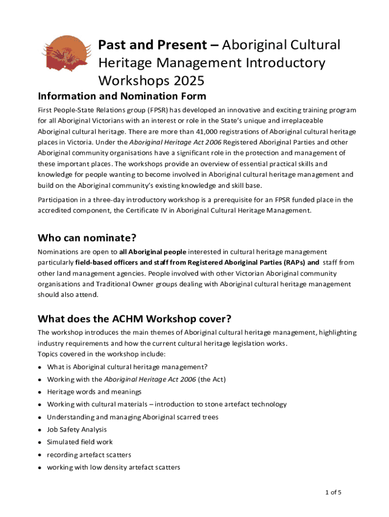 Get the free Past and Present – Aboriginal Cultural Heritage Management Introductory Workshops 2025