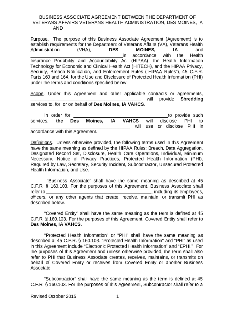 Identify the parties involved – Clearly define who the covered entity and business associate are.
