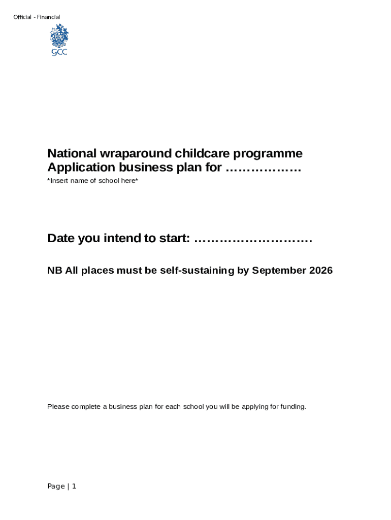 Instructions for the form National Wraparound Childcare Programme Application Business Plan