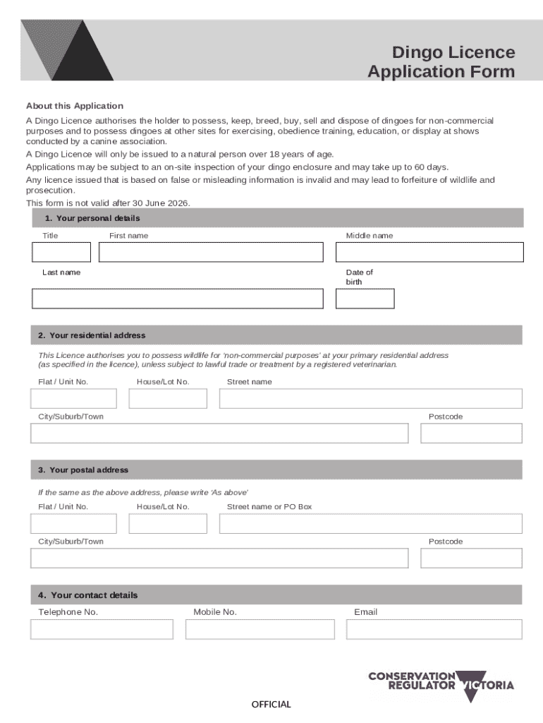 Dingo Licence Application Template Form: A Comprehensive Guide