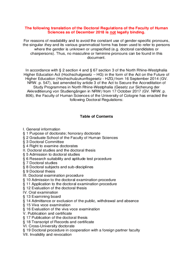 Get the free Doctoral Regulations of the Faculty of Human Sciences