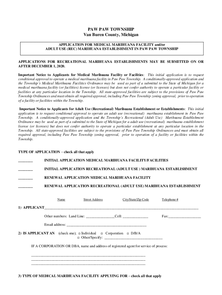 Get the free Application for Medical Marihuana Facility and/or Adult Use (rec) Marihuana Establis...
