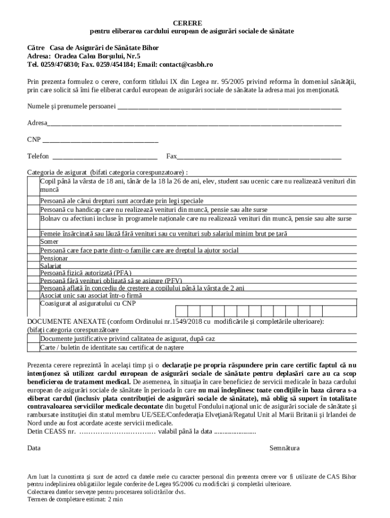 Cerere Pentru Eliberarea Cardului European De Asigur?ri Sociale De S?n?tate template instructions