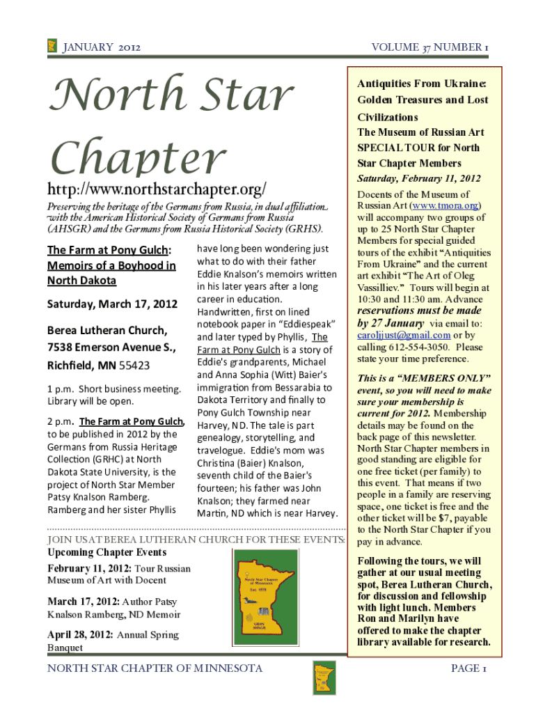 Get the free North Star Chapter of Minnesota Germans from Russia ...
