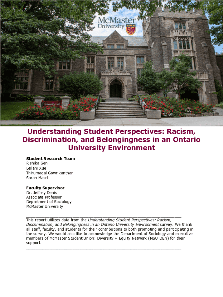 Get the free Understanding Student Perspectives: Racism, Discrimination, and Belongingness in an ...