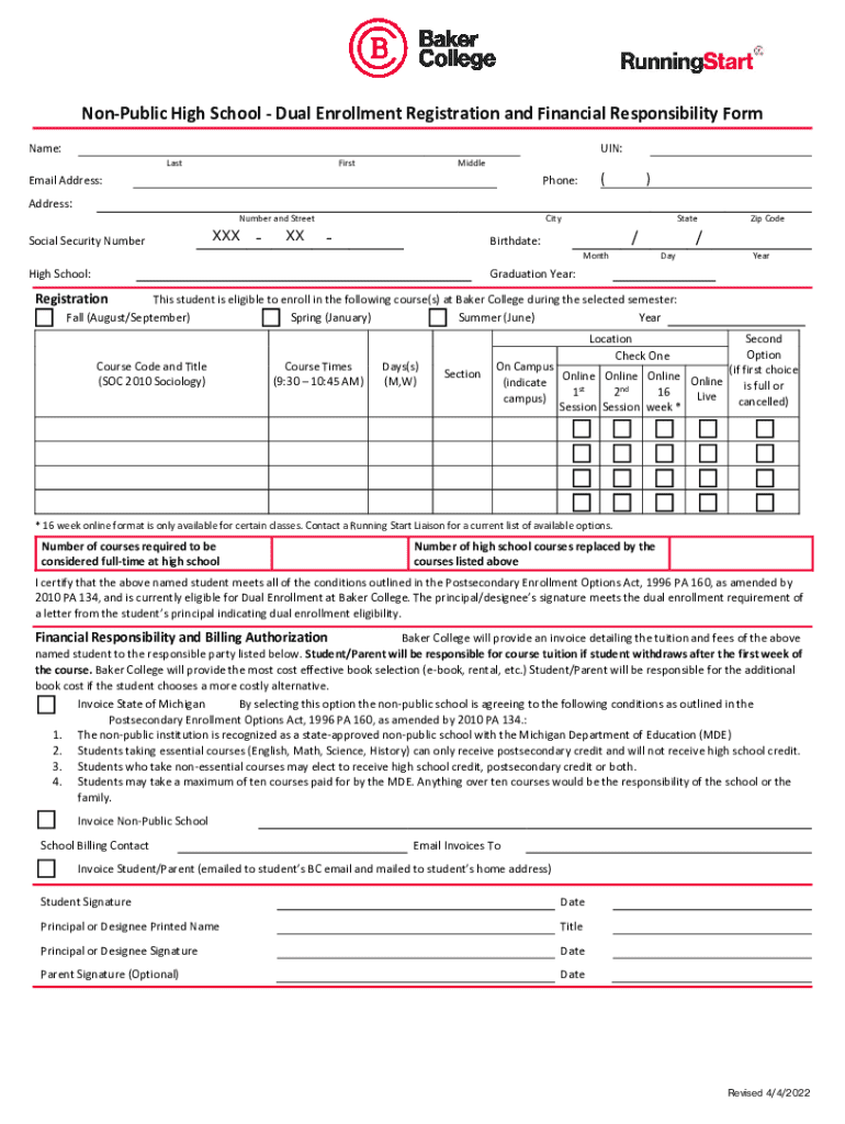 Get the free Non-public High School - Dual Enrollment Registration and Financial Responsibility Form
