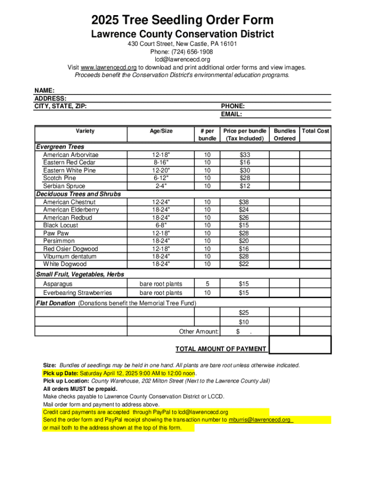 Get the free 2025 Tree Seedling Order Form