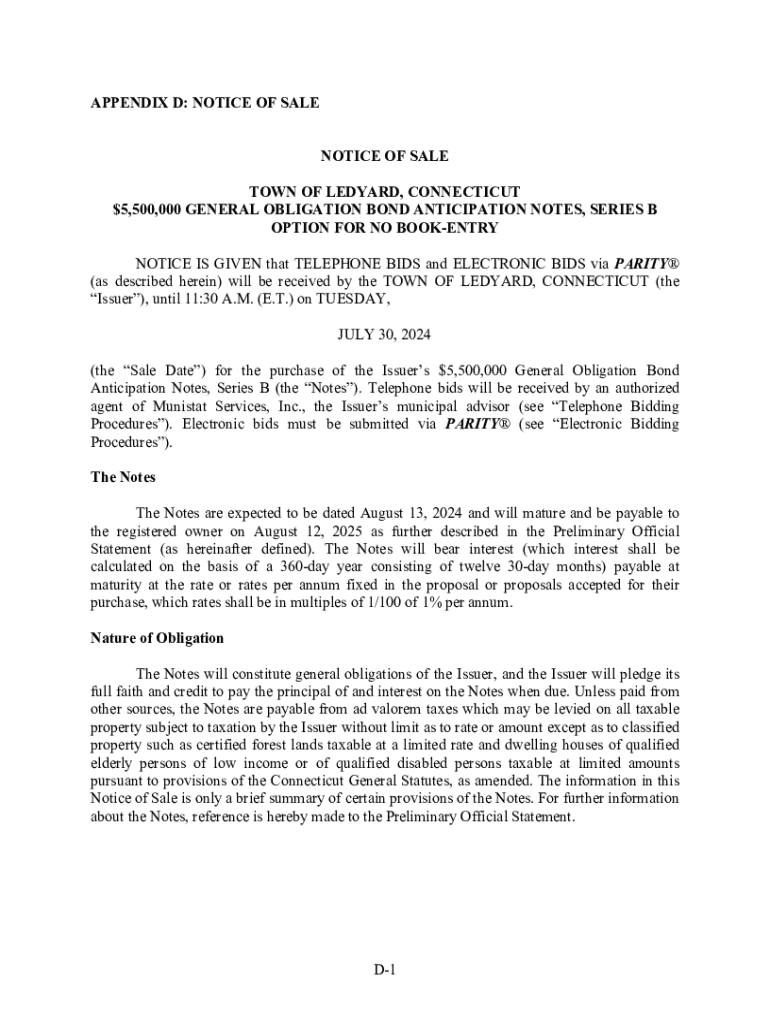 Completing a Notice of Sale Form requires careful attention to detail and specific information. Start by gathering necessary documents such as the property deed, any existing liens data, and identification for the property owner. Accessing public property records can help confirm accurate information regarding the property, making the completion process smoother.