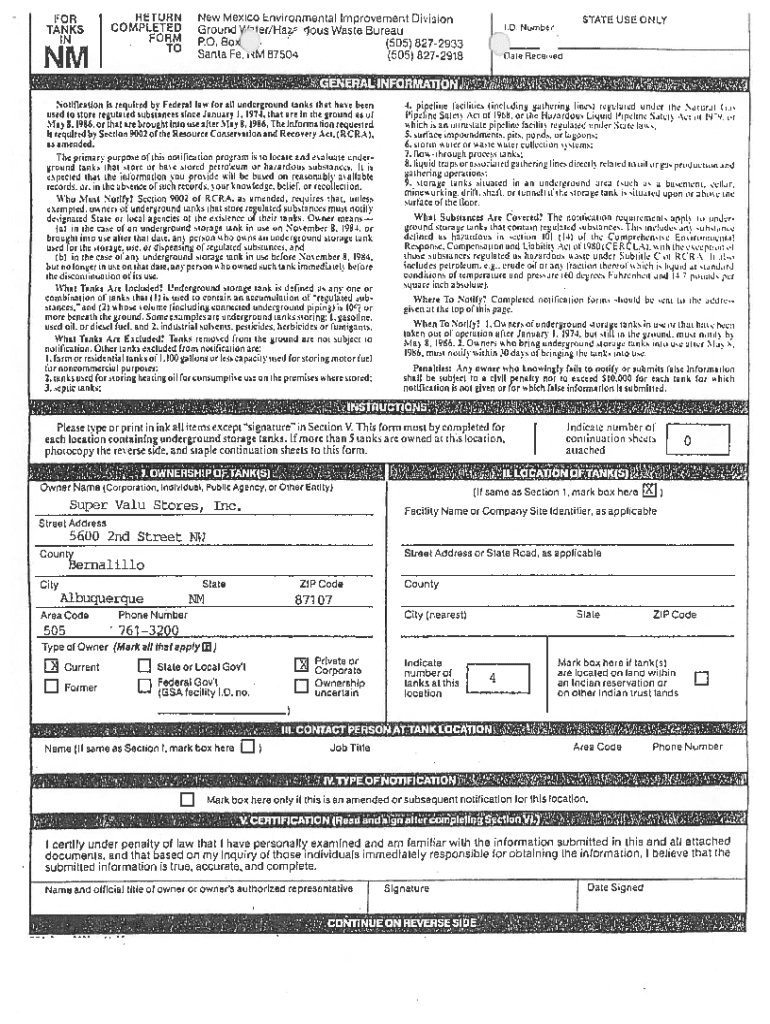 Get the free Notification for Underground Storage Tanks