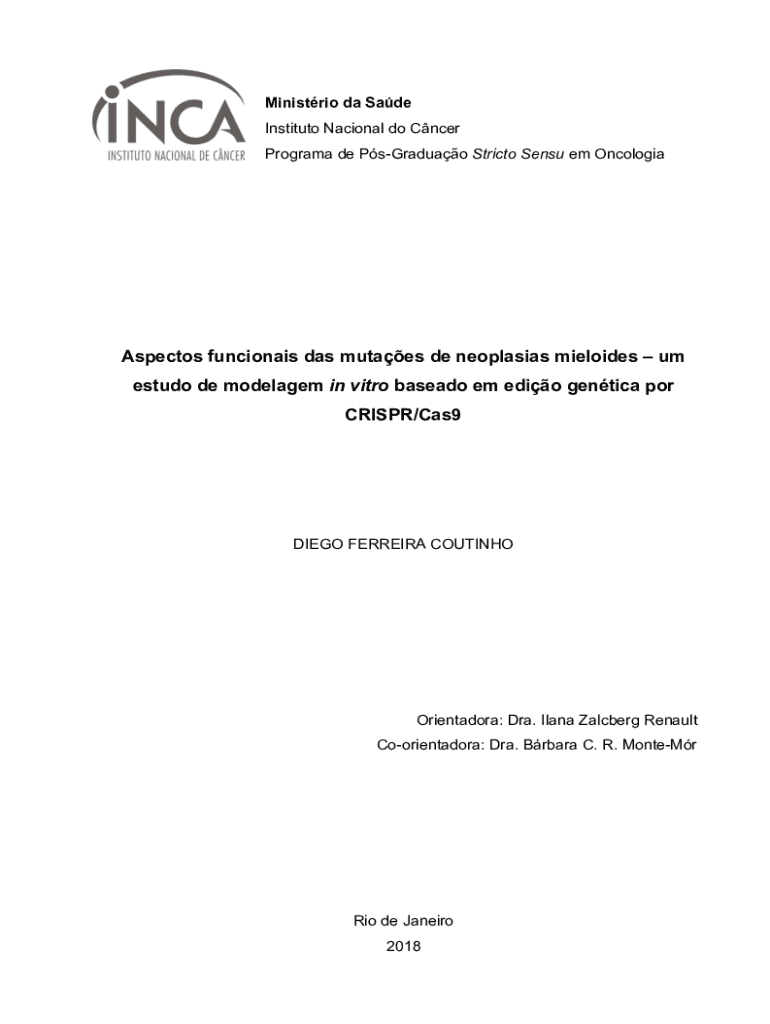 Tese de doutorado apresentada ao Programa de Pós-Graduação Stricto Sensu em Oncologia do Instituto Nacional do Câncer. A pesquisa investiga as mutações em neoplasias mieloides e suas implicações