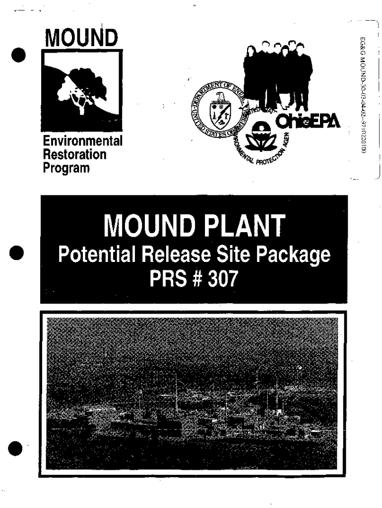 This document outlines environmental concerns related to the Mound Plant, specifically focusing on PRS #307, which involves soil contamination assessments and public review notices for remediation