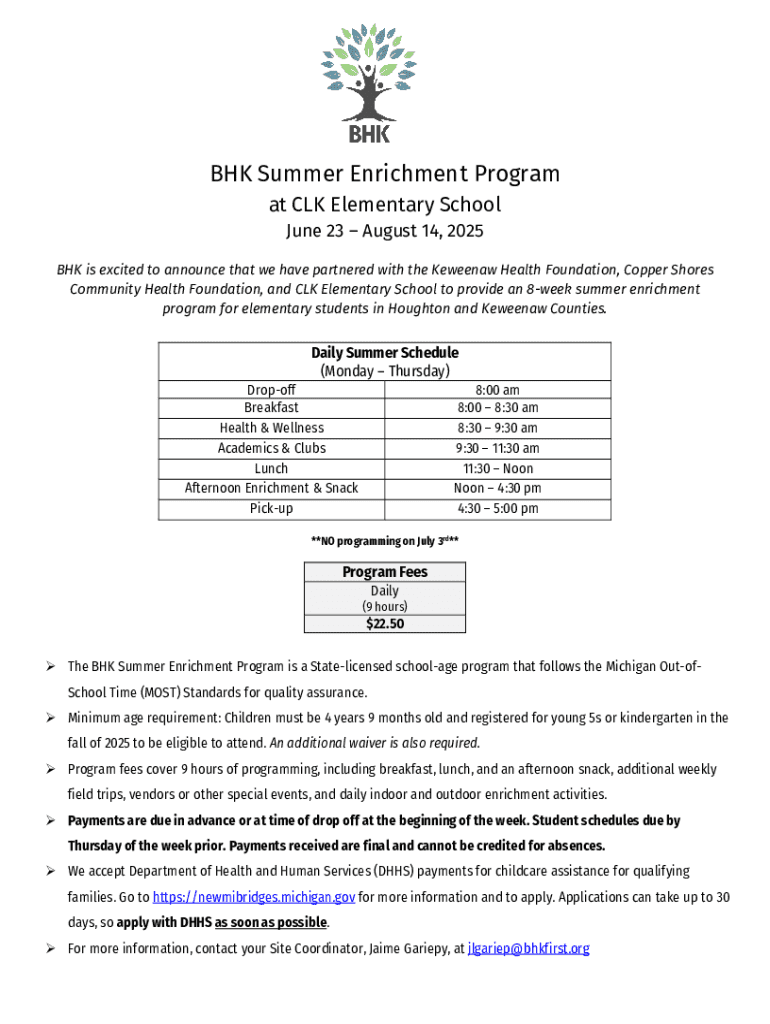 BHK Summer Enrichment Program Form: A Complete Guide