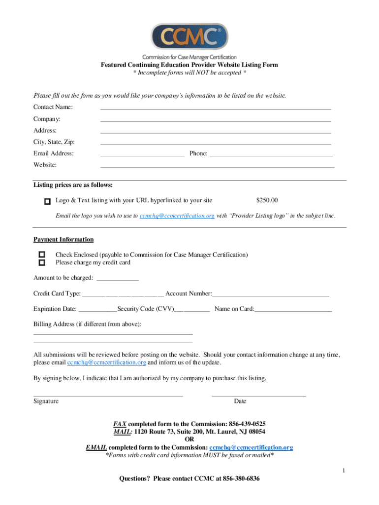 Get the free Featured Continuing Education Provider Website Listing Form