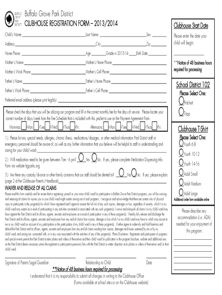 Get the free Buffalo Grove Park District Clubhouse Registration Forms 2013/2014 - id3442 securedata