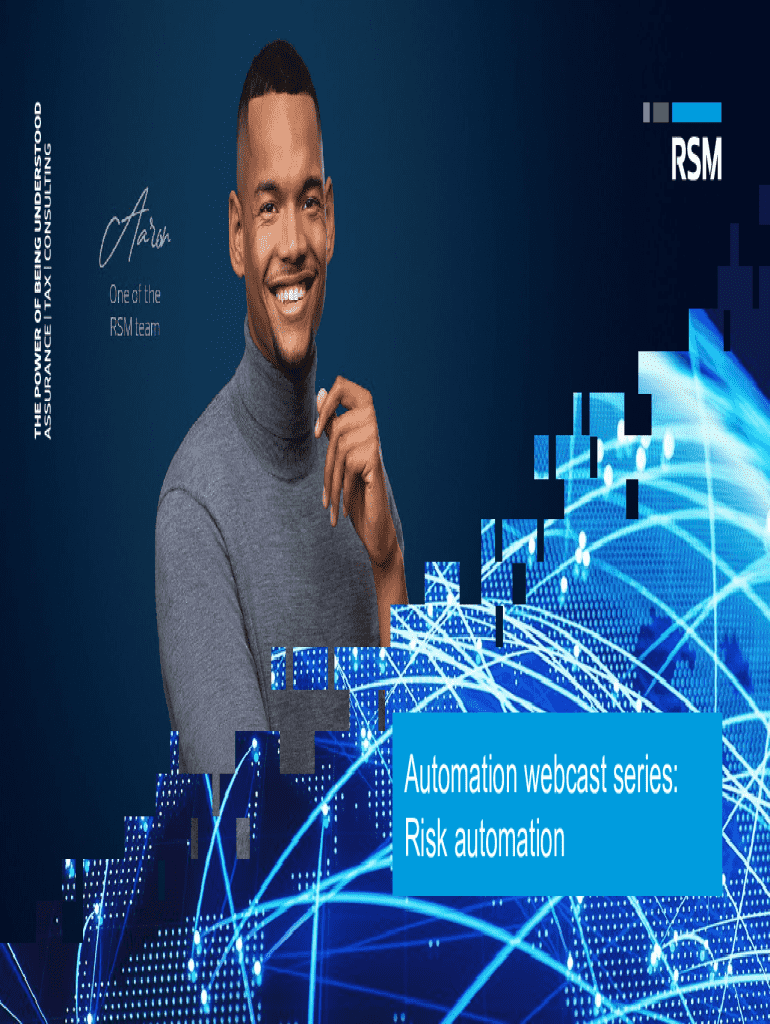 This document outlines a webcast series focused on risk automation, presenting an agenda that includes introductions, overviews, benefits to the risk function, use cases, and next steps in digitizing