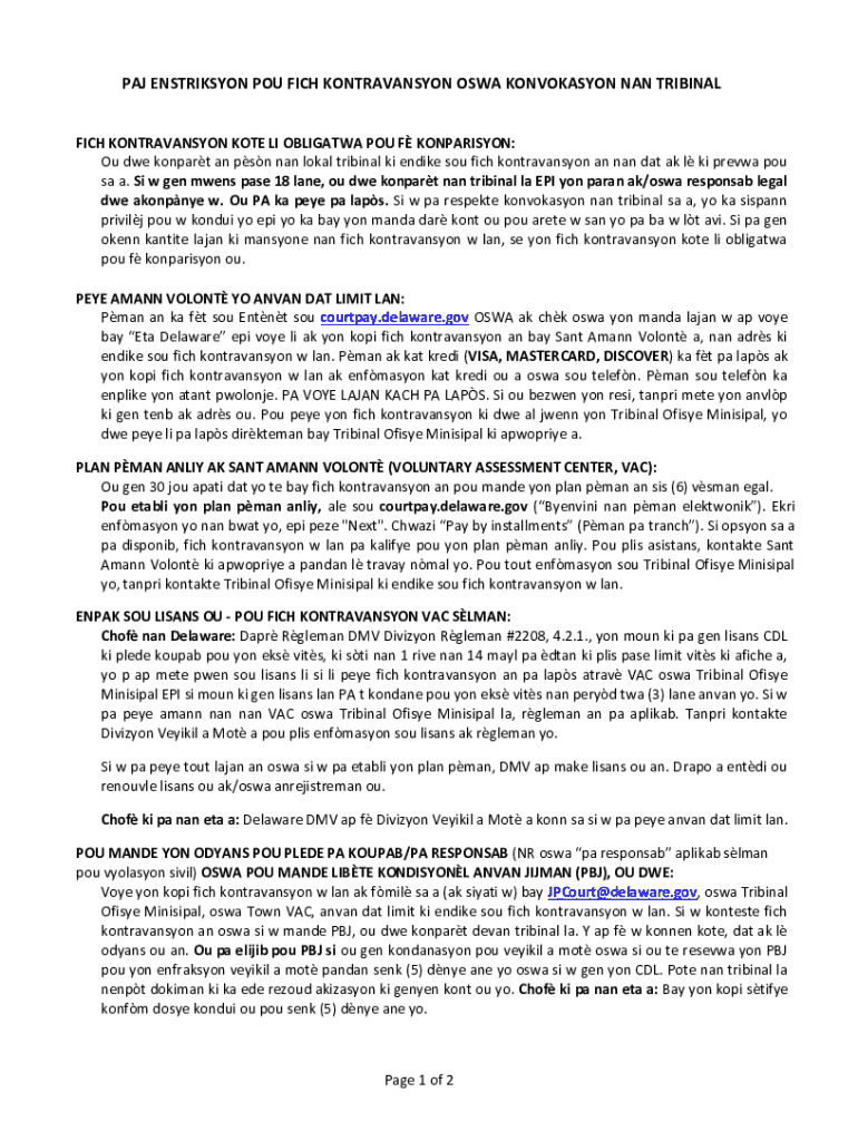 Get the free Fich Kontravansyon Oswa Konvokasyon Nan Tribinal - courts delaware