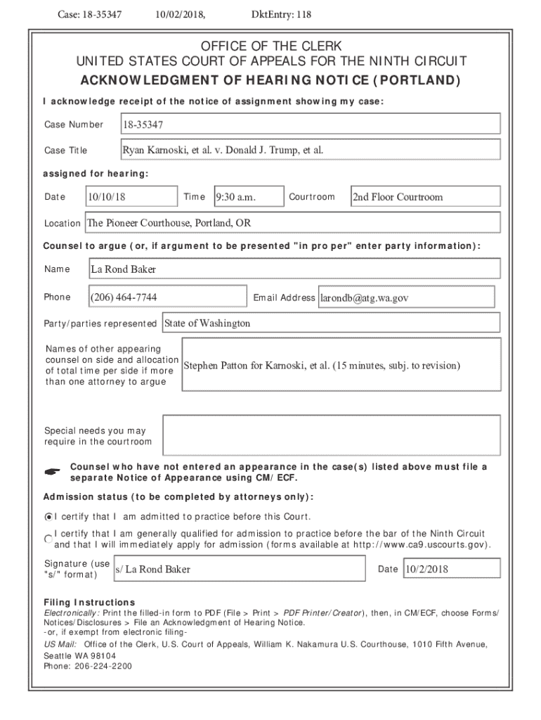 Get, Create, Make and Sign acknowledgment of hearing notice