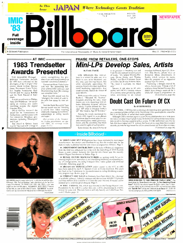 \'\'NIn This IssueWhere Technology Greets TraditionSM 14011FNLYF4t)frtTOOMAR(i4l)3 10NEWSPAPERUcYIMIC\'83 Fullcoverage insideiABillboard PublicationAT IMICPRAISE FROM RETAILERS, ONE STOPS1983 TrendsetterAwards