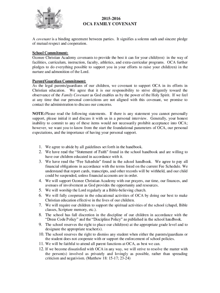 Get the free 2015-2016 Oca Family Covenant
