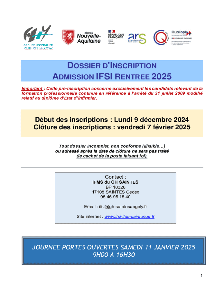 Ce document concerne la pré-inscription pour l\'admission au diplôme d\'État d\'infirmier pour les candidats en formation professionnelle continue, incluant des informations sur les modalités