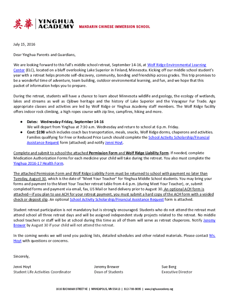 Edit your yinghua middle school retreat form online