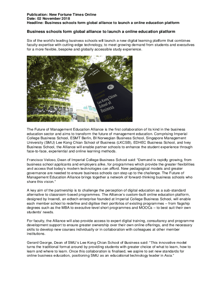 Get the free Business schools form global alliance to launch a online ...