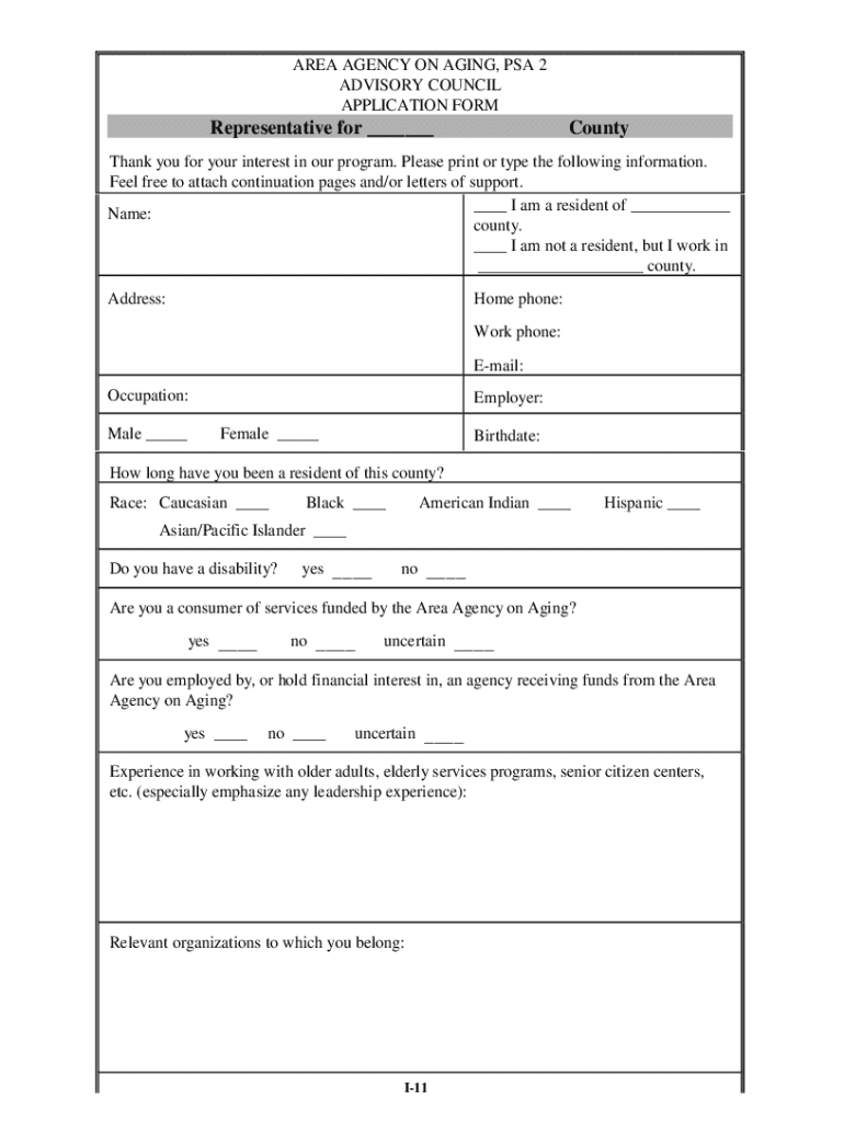 Get the free Area Agency on Aging, Psa 2 Advisory Council Application Form