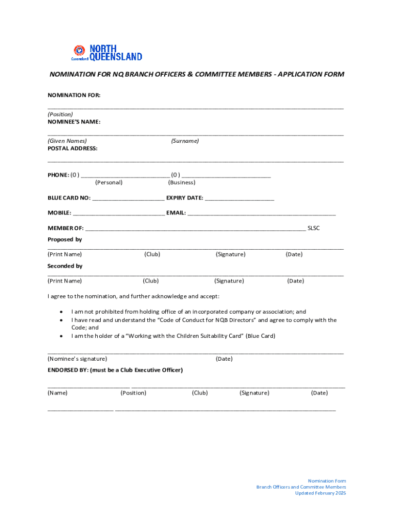 Get the free Nomination for Nq Branch Officers & Committee Members - Application Form - lifesavin...