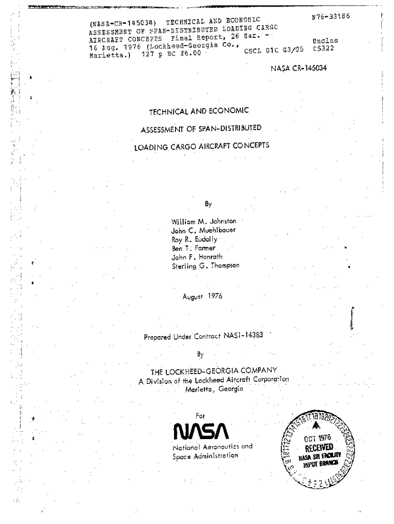 This document is a final report assessing the technical feasibility and economic viability of span-distributed loading cargo aircraft concepts, comparing them to conventional aircraft designs.