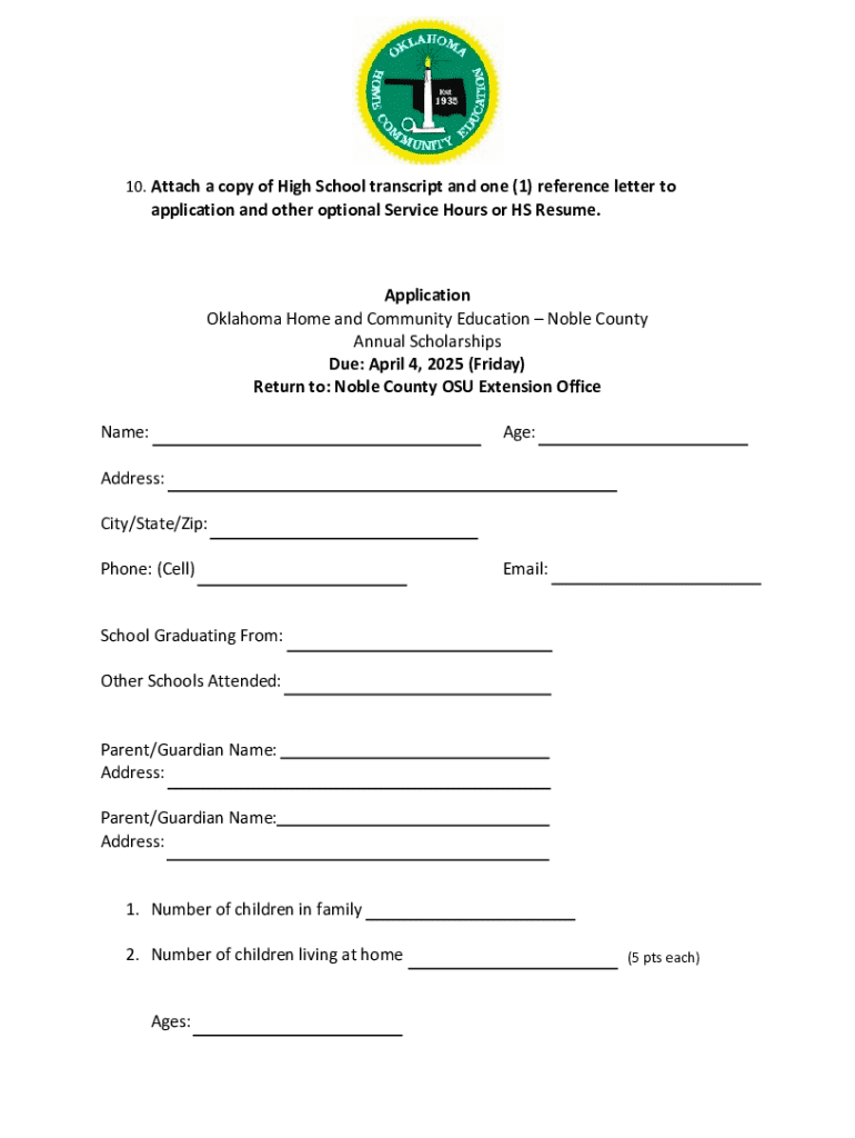 Get the free Noble County Oklahoma Home and Community Education Annual Educational Scholarships