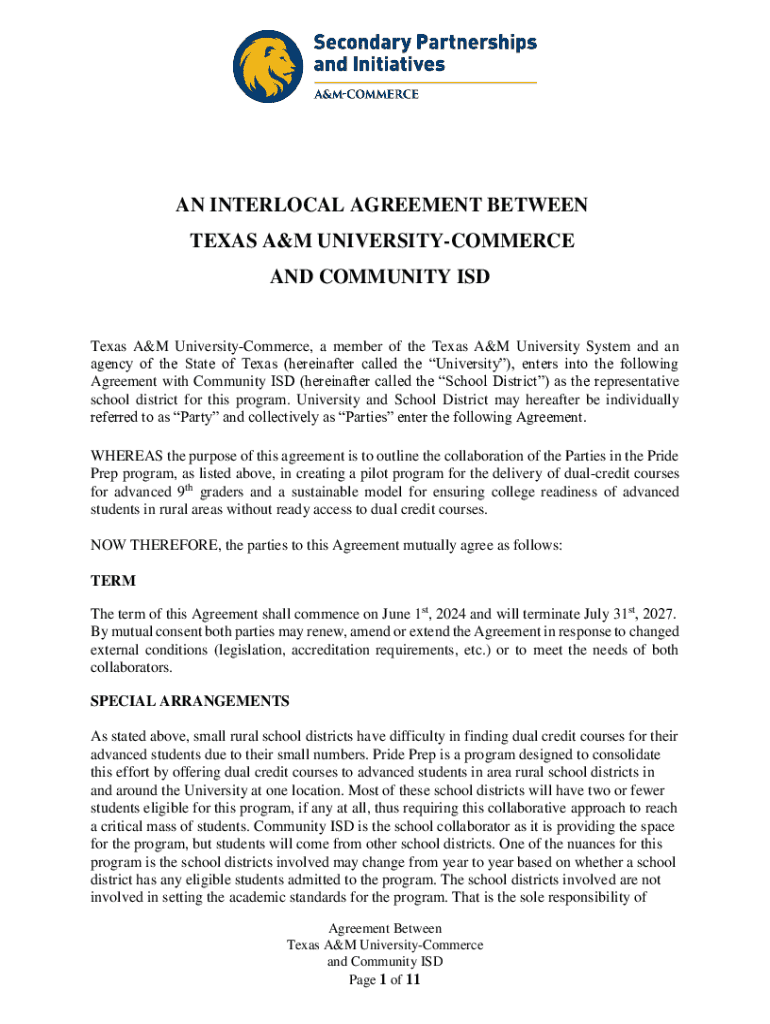 Get the free Interlocal Agreement Between Texas a&m University-commerce and Community Isd