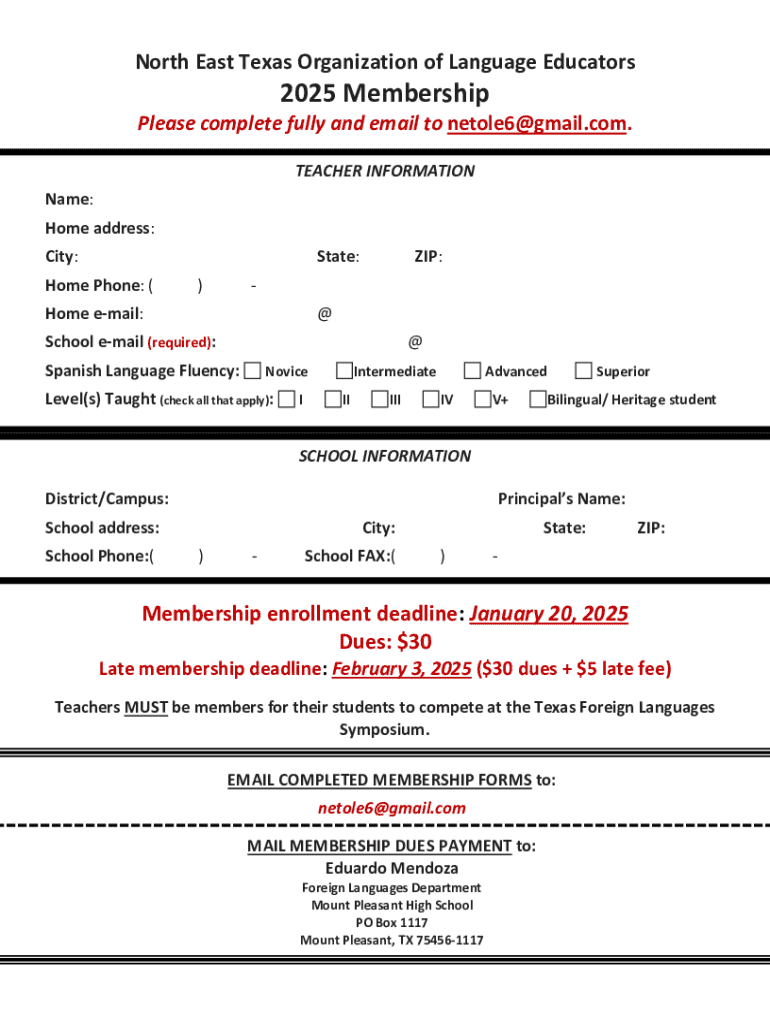 Get the free North East Texas Organization of Language Educators 2025 Membership