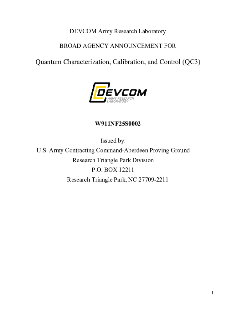 Get the free Broad Agency Announcement for Quantum Characterization, Calibration, and Control (qc3)