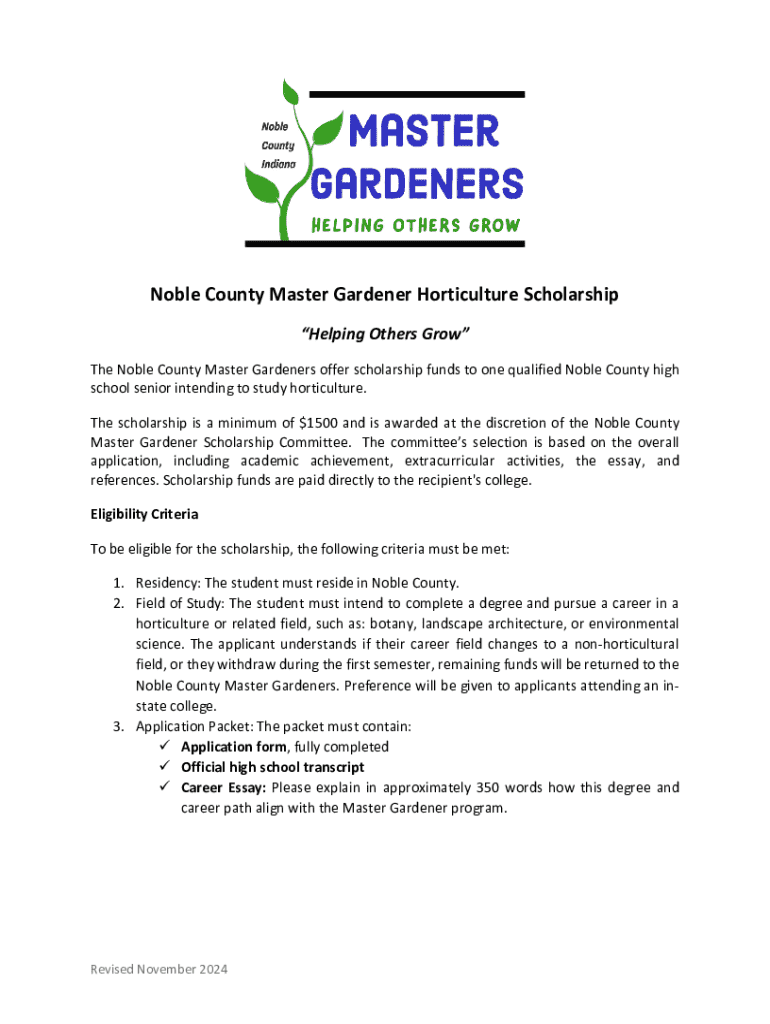 Get the free Noble County Master Gardener Horticulture Scholarship - extension purdue