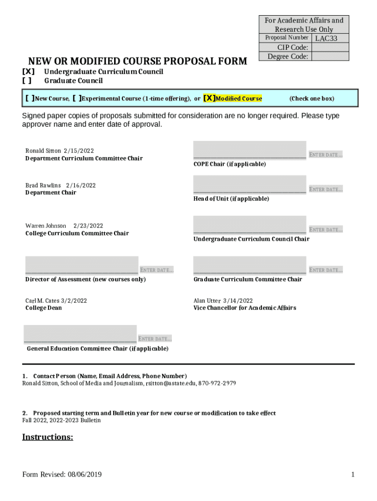 How to fill out New or Modified Course Proposal