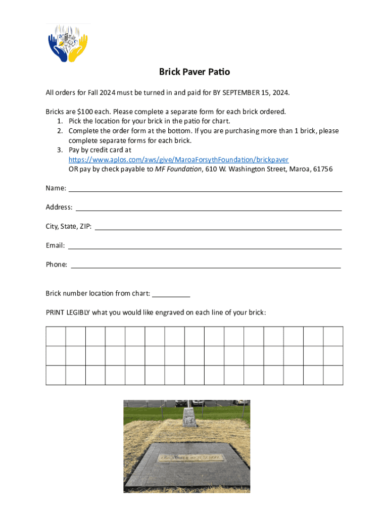 Fill out your brick paver order form online with pdfFiller!