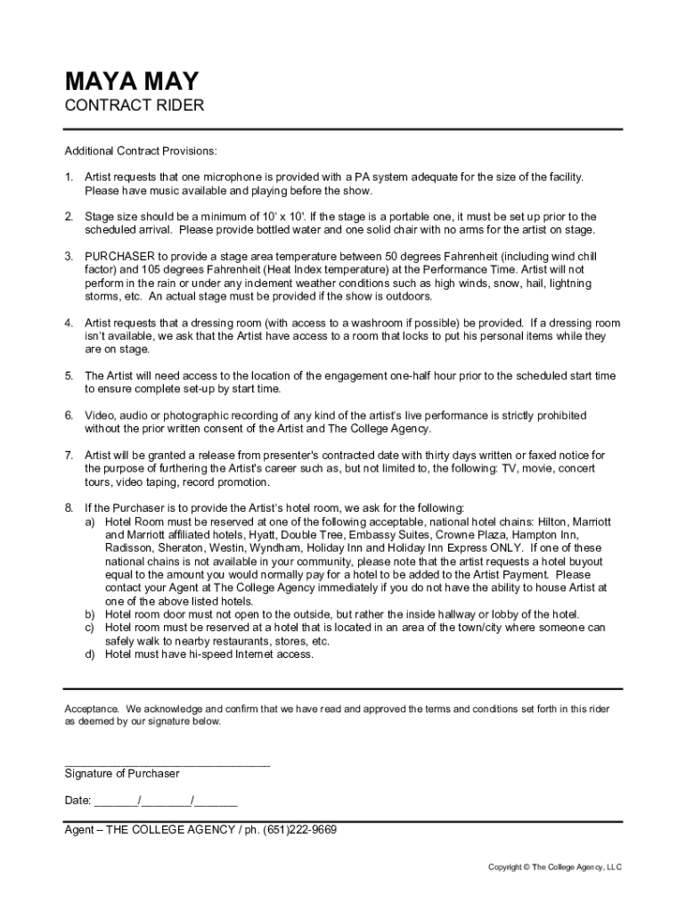 Fill out your maya may contract rider online with pdfFiller!